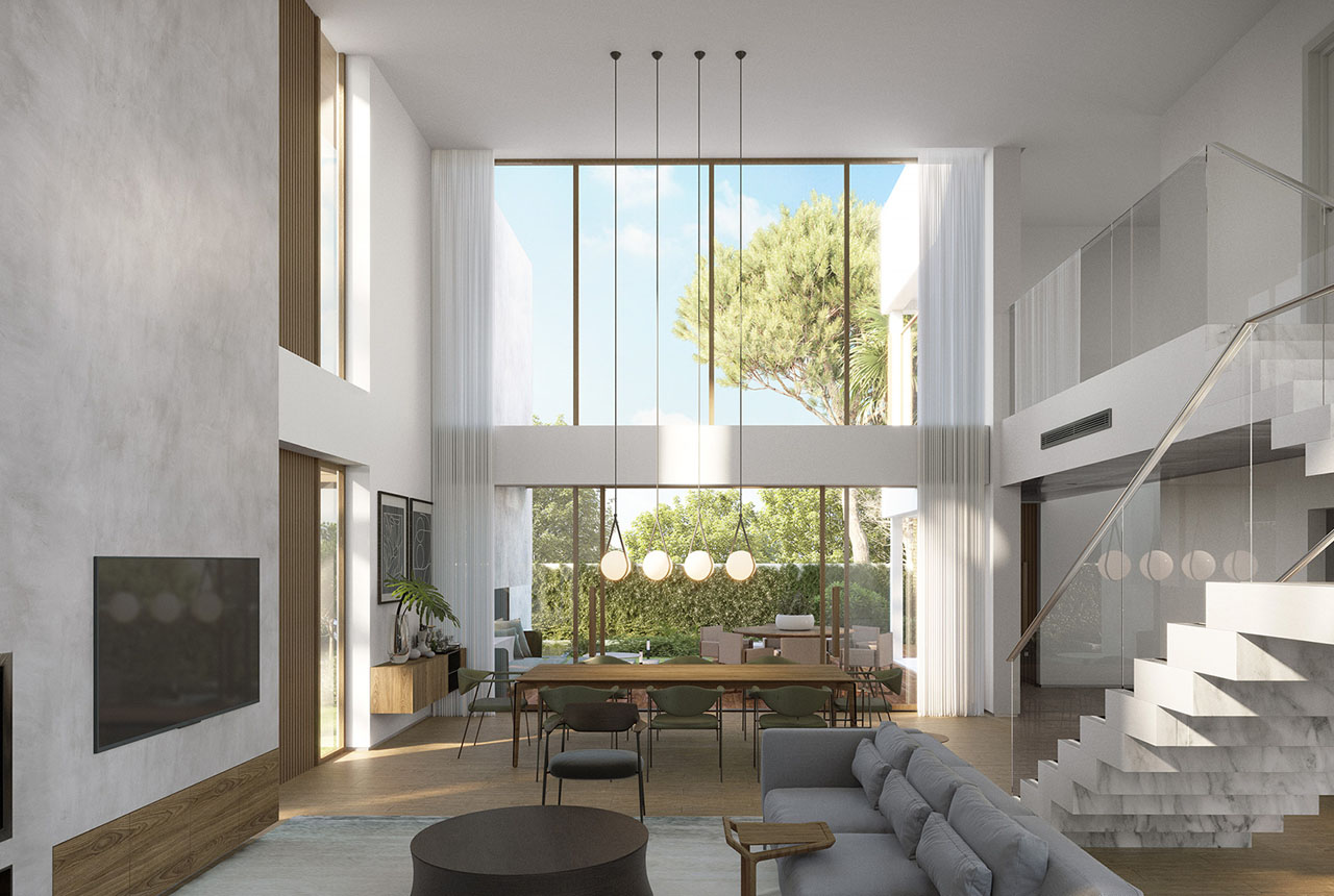 At the Estoril Woods Condominium, each house was designed by Sidney Quintela’s studio with all the comfort. Immersed in a green, private and peaceful environment, with 24/7 security, the Estoril Woods houses are just minutes away from the beaches of the Costa do Sol and the unique charm of the bay of Cascais.